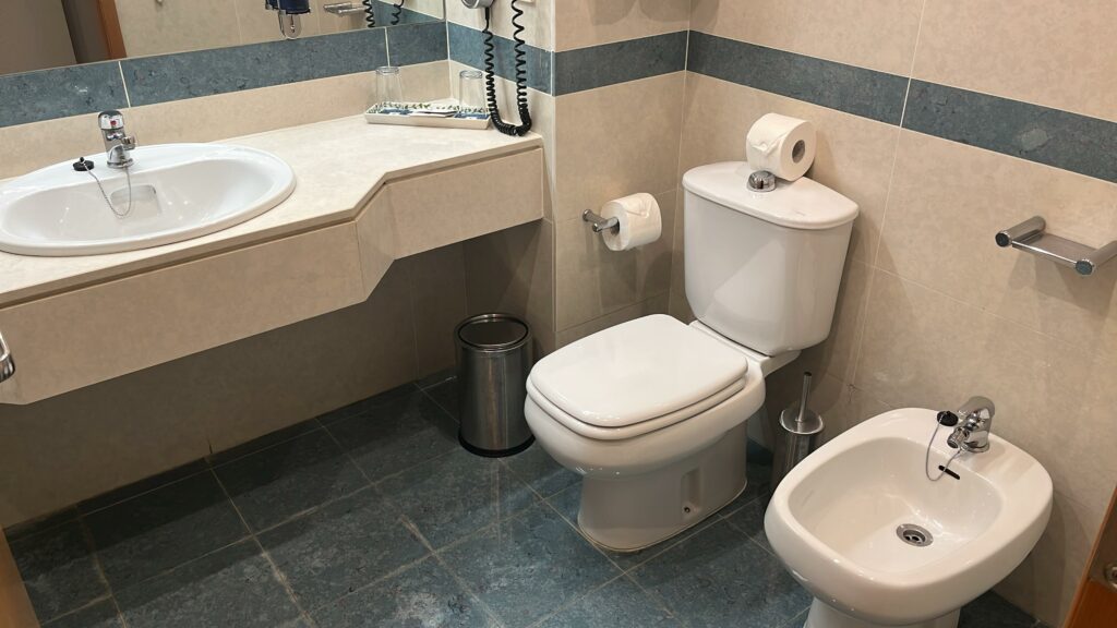El baño estaba anticuado, con bañera en lugar de ducha moderna, y una alcachofa colocada tan baja que una persona alta corría el riesgo de golpearse la cabeza.
