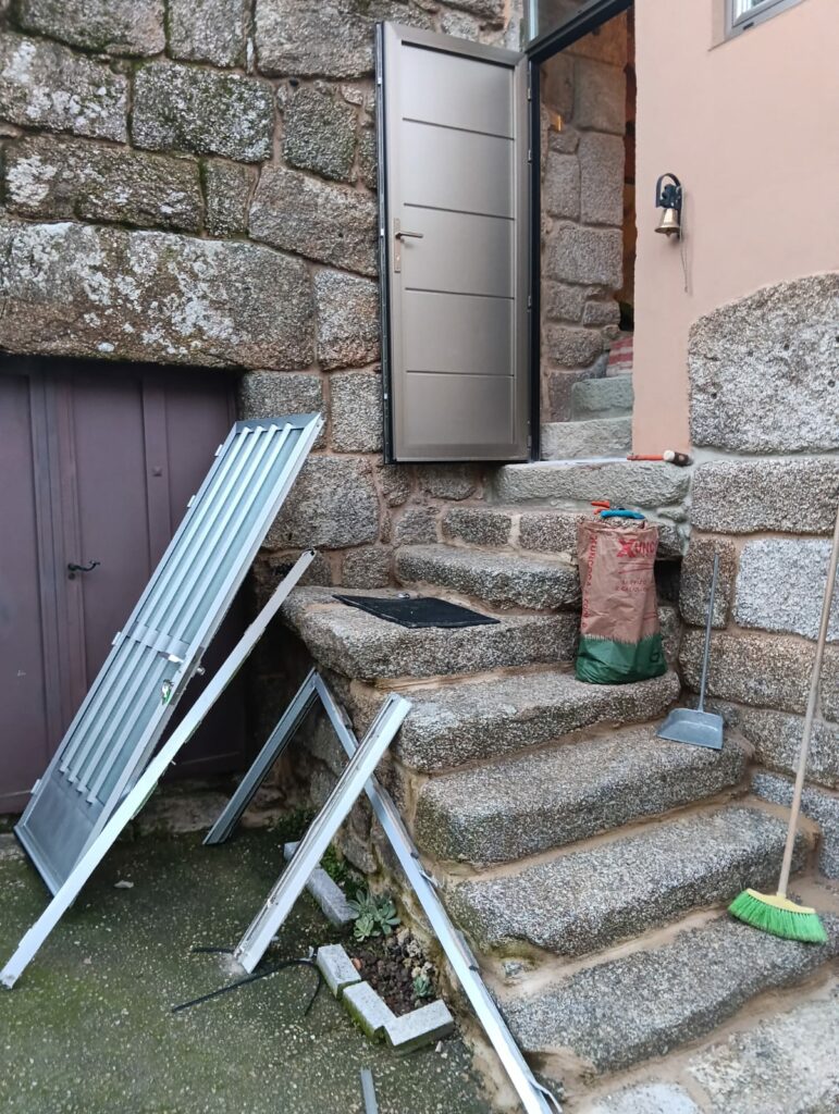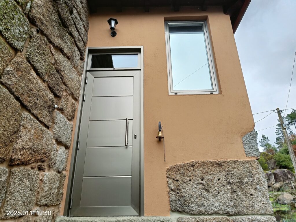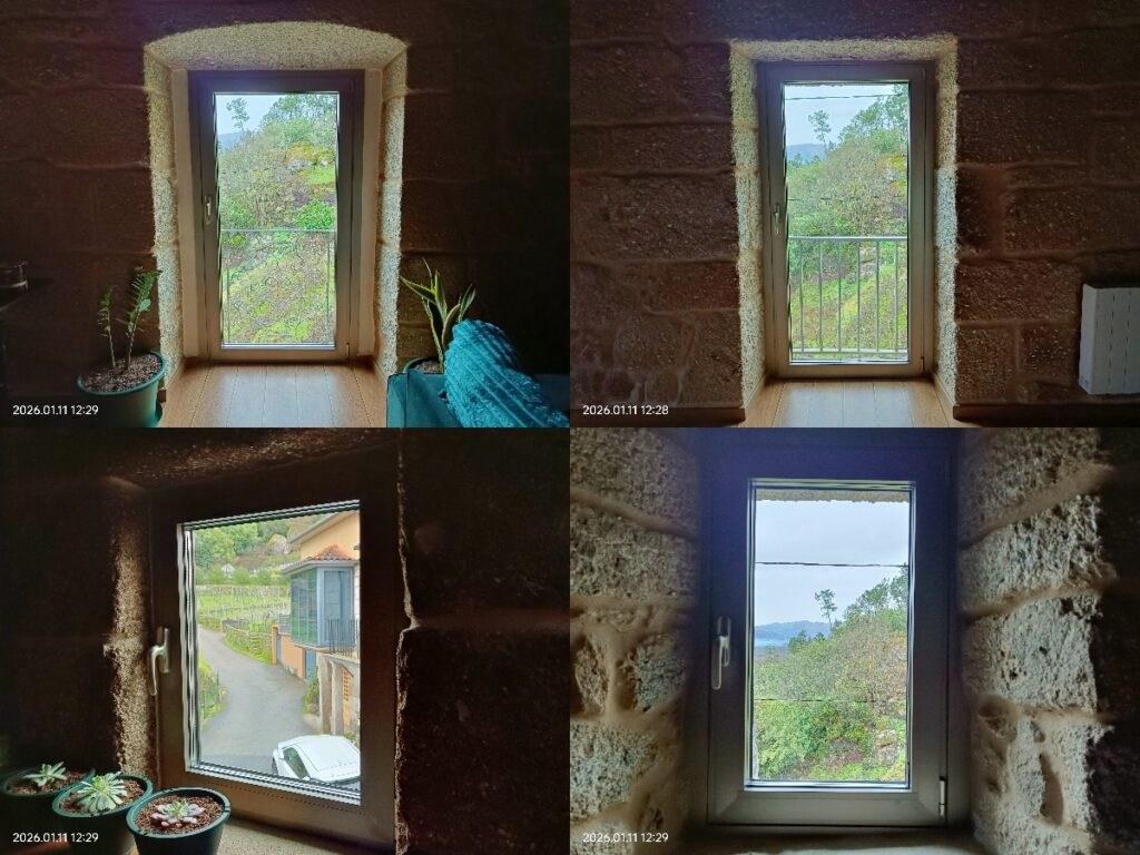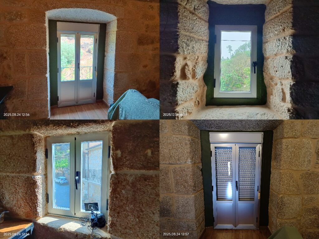 Lo que sí me llamó la atención fue que, en primer lugar, las ventanas nuevas que ya estaban instaladas en la casa de Ourense eran de mejor calidad que las que tenemos en nuestra casa de Porto. Además, el presupuesto que me dio este señor para un portón, una puerta y cuatro ventanas —dos de ellas ventanales grandes del salón— me pareció bastante accesible (luego nos enteramos de que lo que nos iba a instalar era de mala calidad).