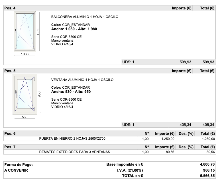Yo ya le había enviado un presupuesto previo que tenía de otra persona, recomendado por el carpintero. Pero más tarde descubrí que aquel supuesto recomendado me había mentido en prácticamente todo: me aseguró que el color que yo quería para las ventanas era un “color especial”, carísimo, y que para abaratar había que poner otro color por dentro; me dijo que debía elegir otro tipo de cristal, etc. Después de tanto cuento, me presentó un presupuesto de casi 11.000 euros.