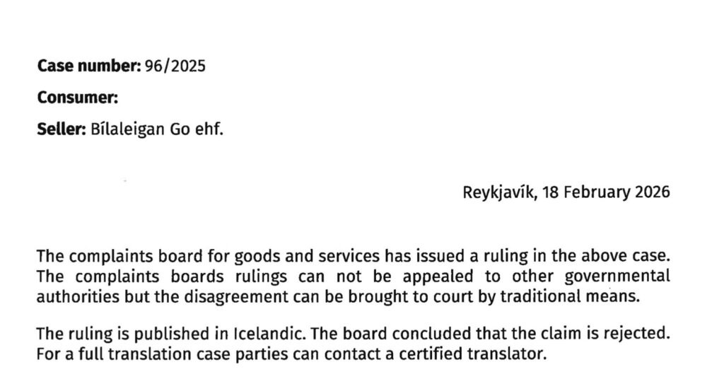 In the end, the claim was rejected by the Icelandic Complaints Board, effectively closing the case unless we choose to take it to court—something that, realistically, requires hiring a lawyer and investing even more time and money.