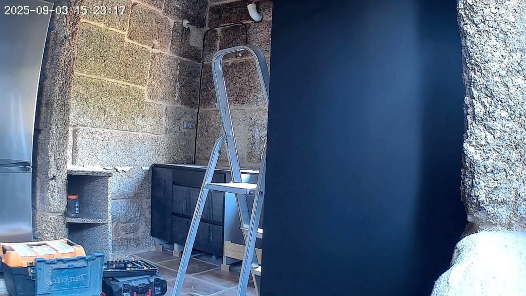 The next day, September 3, we saw on the security cameras that the carpenter was back at the house working, and to top it off, Julieta started taking the old furniture out of the garage. Everything was going quite well, and little by little, the kitchen renovation was taking shape.