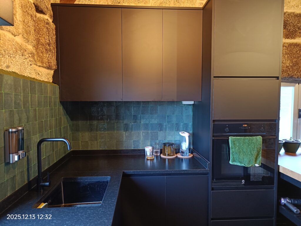 As if that weren’t enough, he also fulfilled one of my aesthetic wishes: the green tiles in the kitchen. Those we couldn’t install during the main renovation because there were no bricklayers available. Ricardo came, installed them calmly, and they turned out exactly as I wanted.