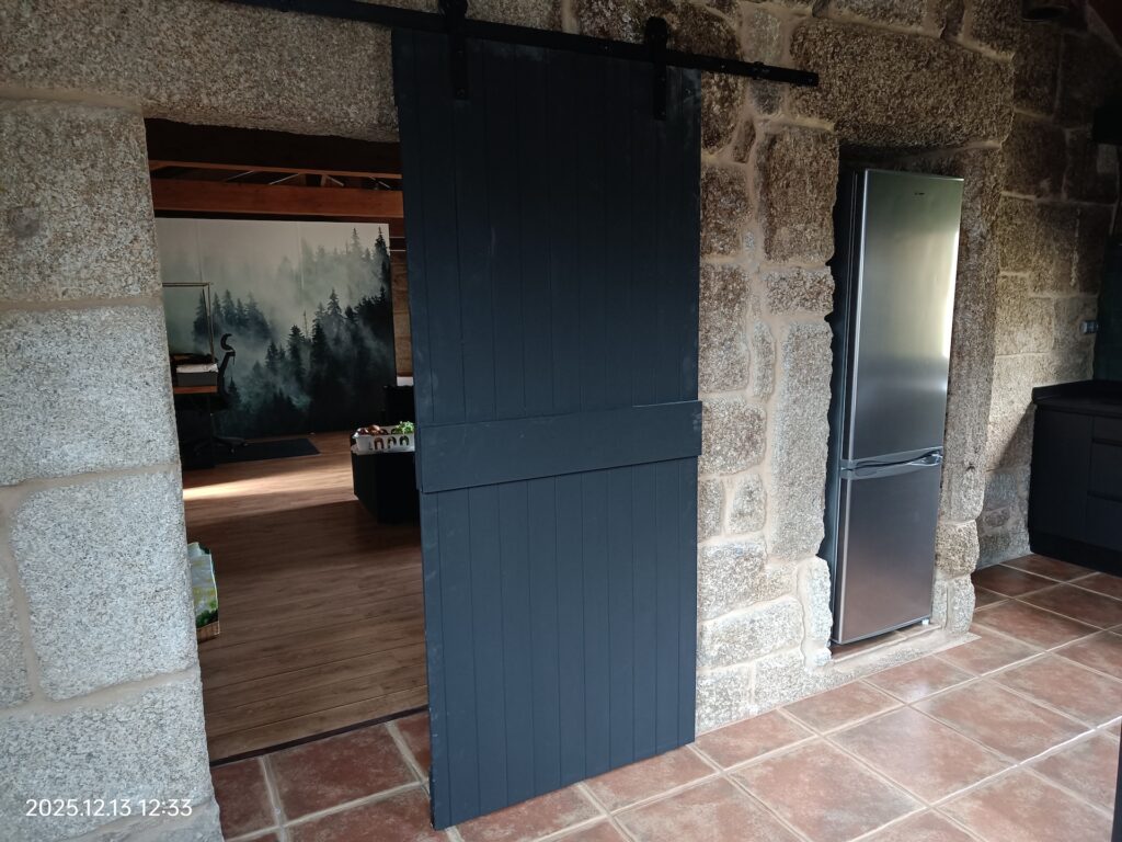 There was also one weekend in November when we managed to make progress on our own: we assembled the sliding kitchen door; one we had bought on Amazon. We put it together, painted it and installed it. It’s not the most functional door in the world, but it helps divide the space a bit and adds privacy, which is what we were looking for.